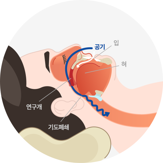 수면 중 숨을 쉴 때 들이마신 공기가 목구멍 속의 좁은 곳을 지나가면서