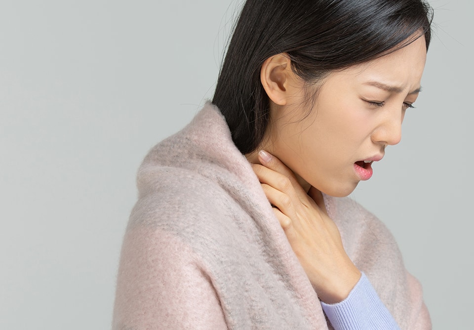 침을 삼킬 수 없을 정도의 목 부위 통증과 함께 발열, 오한, 두통, 온몸의